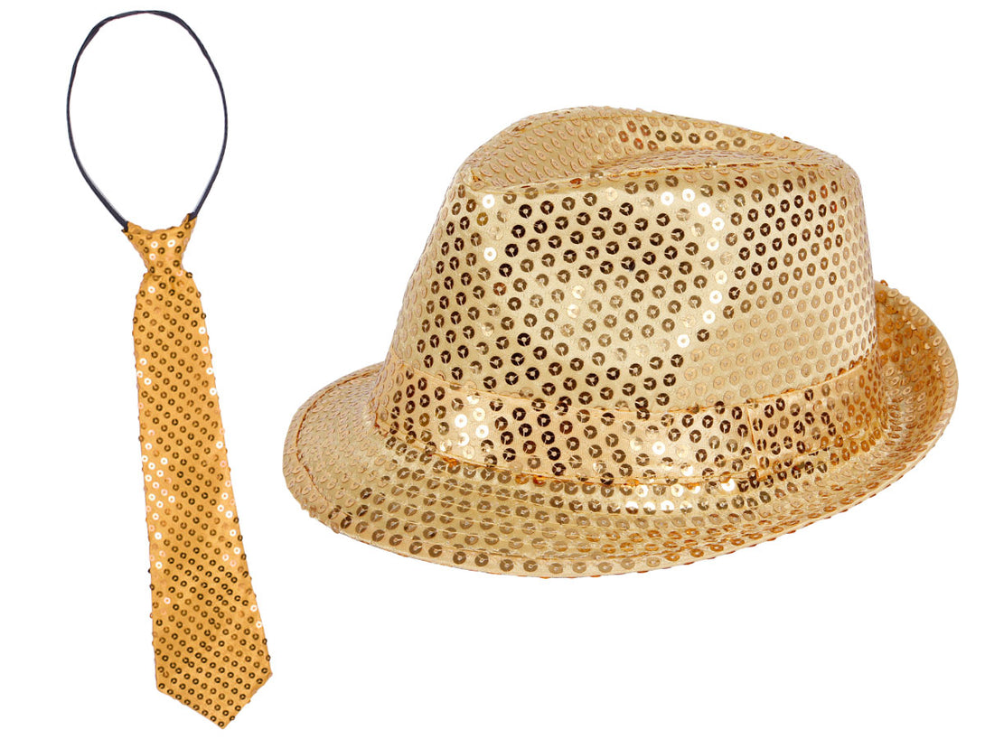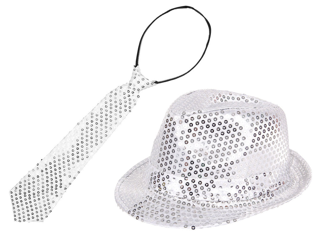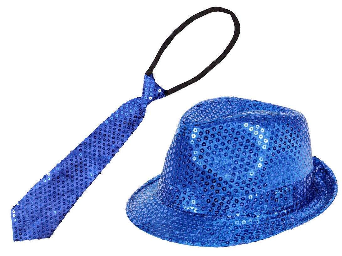 Glitzerndes Set: Trilby Hut + Pailletten Krawatte